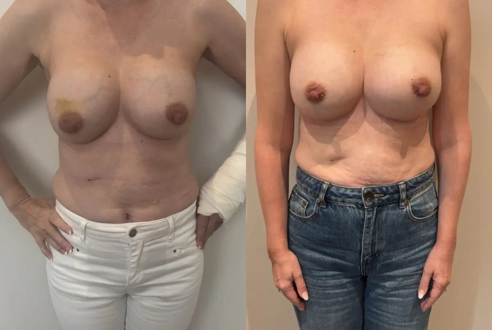 When implants are removed, particularly after long periods or significant skin stretching, it can result in excess skin and changes in breast shape. In these cases, a Breast Lift (Mastopexy) can be performed at the same time as implant removal.